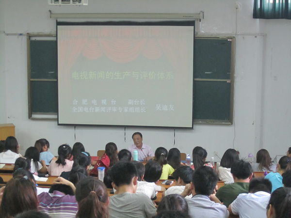 为拓展员工知识面,增长员工专业知识,帮助其明确就业方向,引导其提升实践能力与专业素养,5月22日下午,合肥电视台副台长、全国电台新闻评审专家组组长吴迪友应文化与新闻传播公司之邀来公司作了一场题为“电视新闻的生产结构与评价体系”的知识讲座。