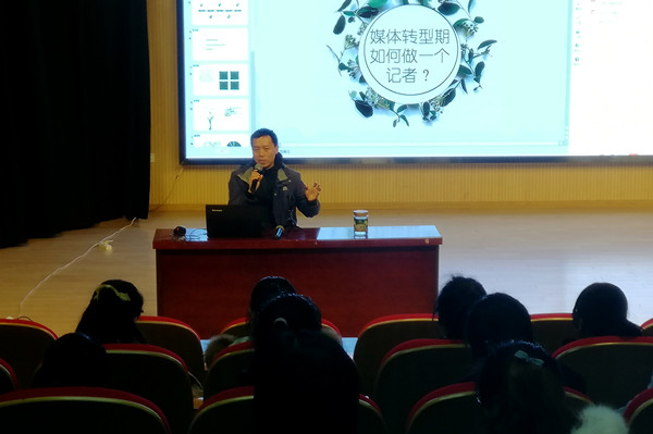 本网讯(通讯员:程睿)12月5日,文传公司特邀新闻学专业学科带头人、安徽广播电视台资深记者方田教授在新闻演播厅举办了题为“媒介转型期间如何做一个新闻人”的学术讲座,新闻系全体师生聆听了讲座。