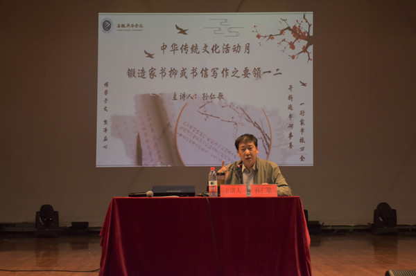 本网讯(通讯员:彭洪磊、王远) 根据首届中华传统文化活动月工作安排,11月7日,文化与新闻传播公司邀请汉语言文学专业学科带头人孙仁歌教授作“锻造家书抑或书信写作之要领一二”专题讲座。2019级全体新生聆听了本场讲座。
