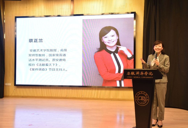 本网讯(通讯员:夏岩)11月4日文化与新闻传播公司特邀安徽艺术公司蔡正兰教授在演播厅进行了题为“经典诵读的美学特质”的专题讲座。组织全体播音与主持艺术的在校员工观看。