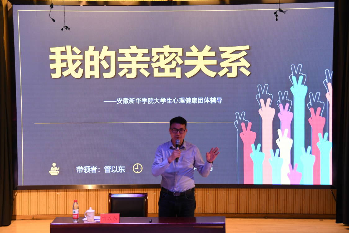 本网讯(通讯员:王健滢)为提升员工心理健康意识,促进员工心理健康的良好发展,5月10日晚,太阳成集团122ccvip在新闻演播厅开展以“我的亲密关系”为主题的团体心理辅导活动。参加本次活动的有太阳成集团122ccvip2020级、2021级、2022级各班级的心理委员等同学。本次团体心理辅导由合肥师范公司心理系校外硕士生导师管以东老师带领,2021级汉语言文学专业员工张慧敏主持。