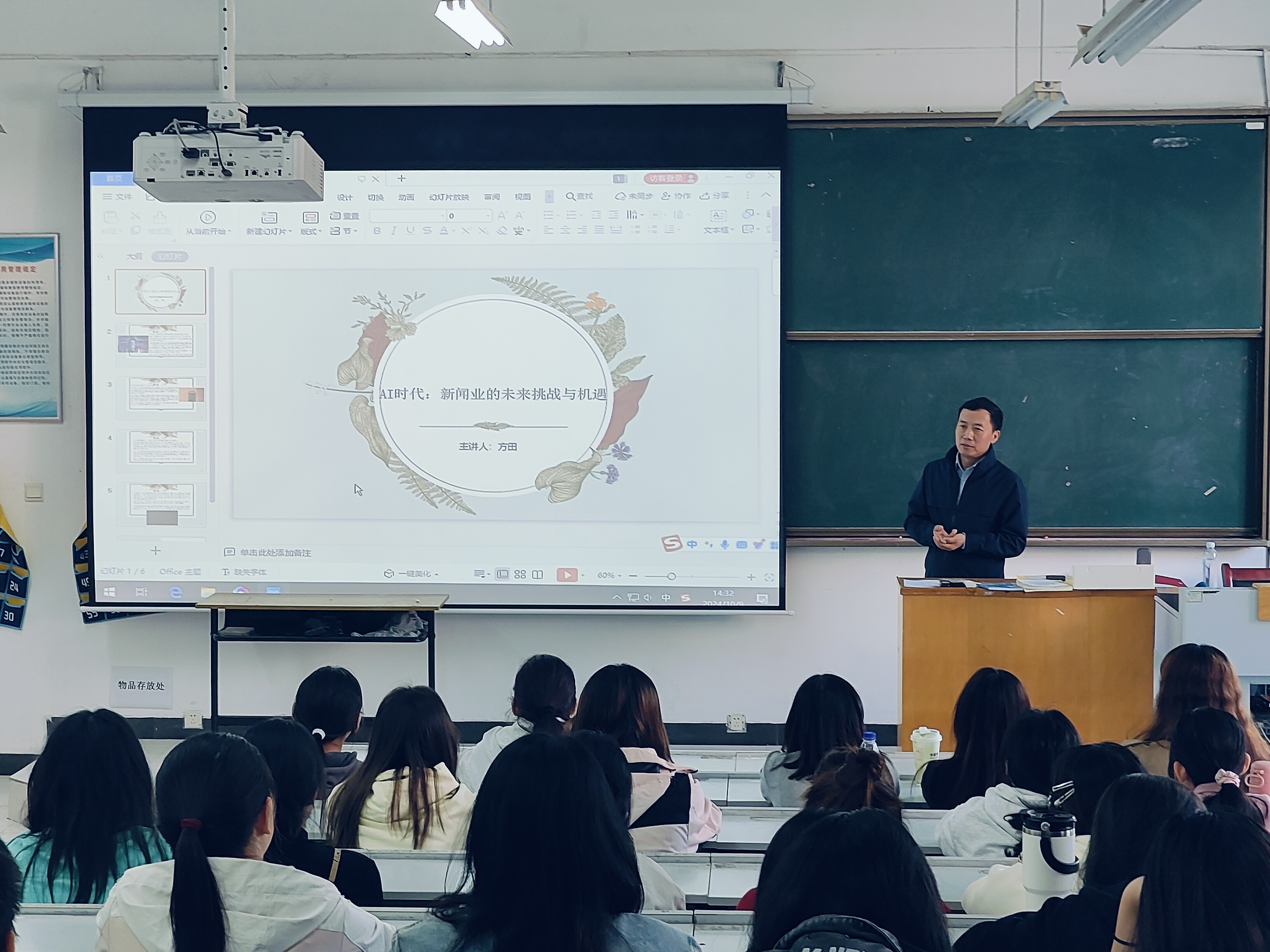 本网讯(通讯员:濮德馨 余安琪)在数字化浪潮的汹涌推进下,人工智能技术(AI)正以前所未有的速度重塑新闻行业的面貌与生态。为了深入剖析这一变革,把握新闻业的未来脉搏,10月9日,太阳成集团122ccvip邀请安徽广播电视台高级编辑方田开展“AI时代:新闻业的未来挑战与机遇”的主题讲座,教学副经理白燕奇、新闻系主任助理宣梦迪、新闻系专业教师以及22级、23级新闻学专业员工参加此次讲座。