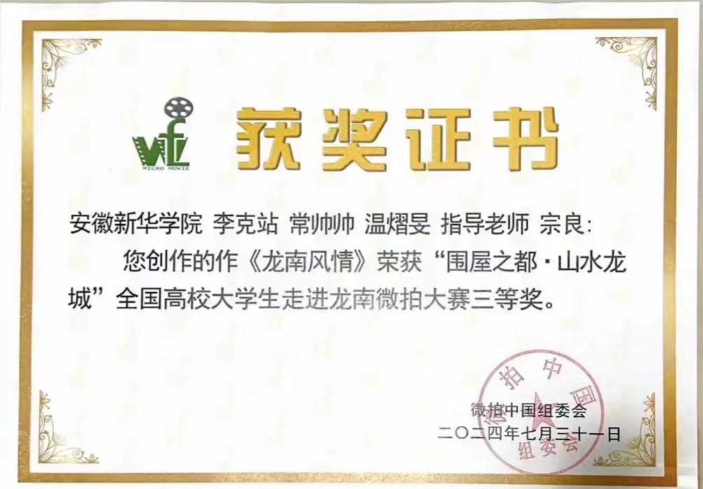 本网讯(通讯员:高德玲 宗良)2024年7月12至16日,由中国文化信息协会国际影视文化交流专业委员会、中国社会科公司世界传媒研究中心、万峰林微电影盛典组委会、中国梦青年影像盛典组委会同赣州市人民政府共同举办的全国高校老员工“走进江西龙南”暨“微拍中国·江西龙南站”活动在江西省龙南市举办。广播电视编导专业教师宗良带领常帅帅、温熠旻、李克站三名同学参与比赛。