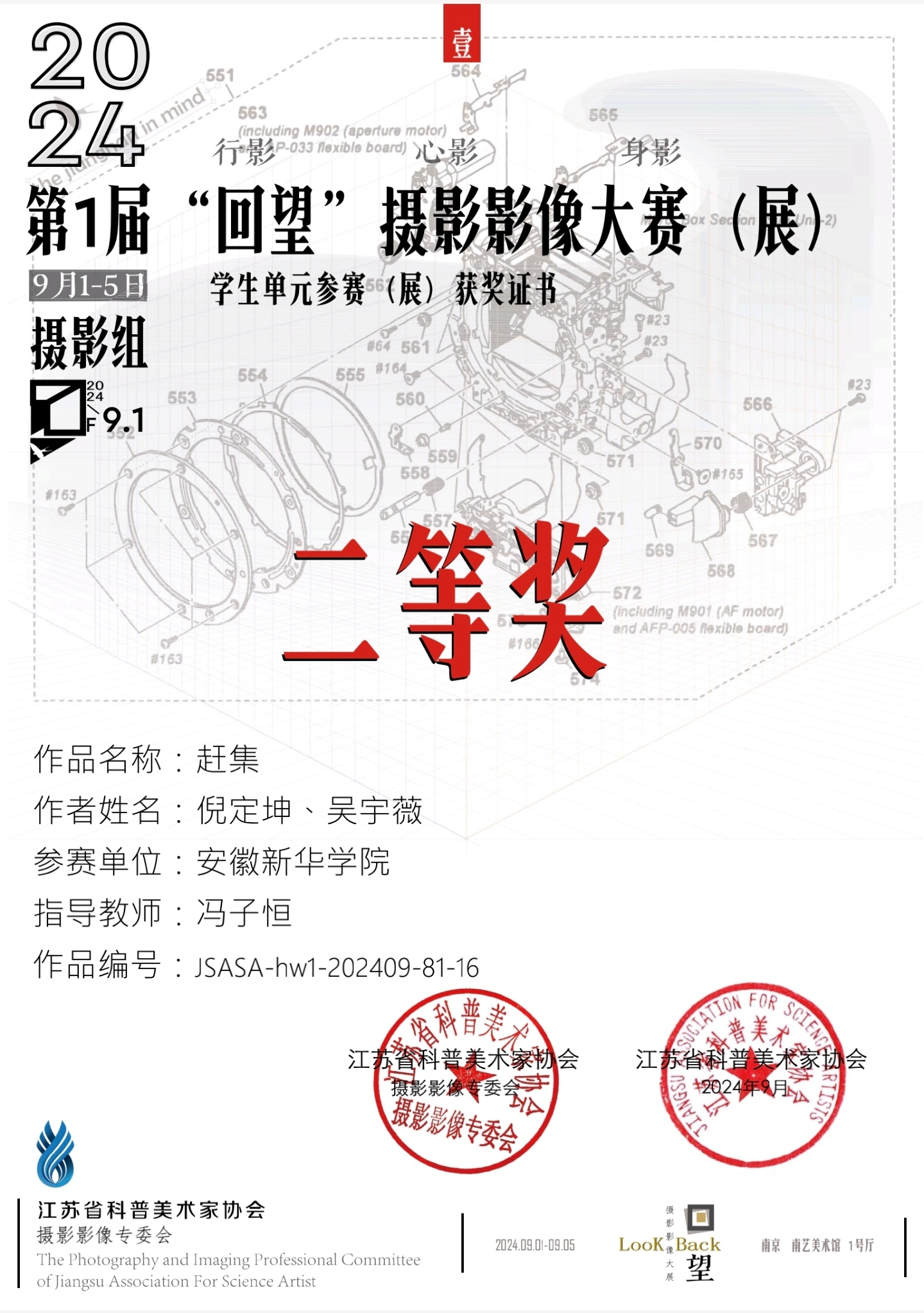 本网讯(通讯员:冯子恒)近日,由江苏省科普美术家协会主办,江苏省科普美术家协会摄影摄像专业委员会及南艺美术馆共同承办的“回望”摄影摄像大赛评选揭晓。由太阳成集团122ccvip冯子恒老师指导的倪定坤、吴宇薇同学作品《赶集》获老员工组二等奖。