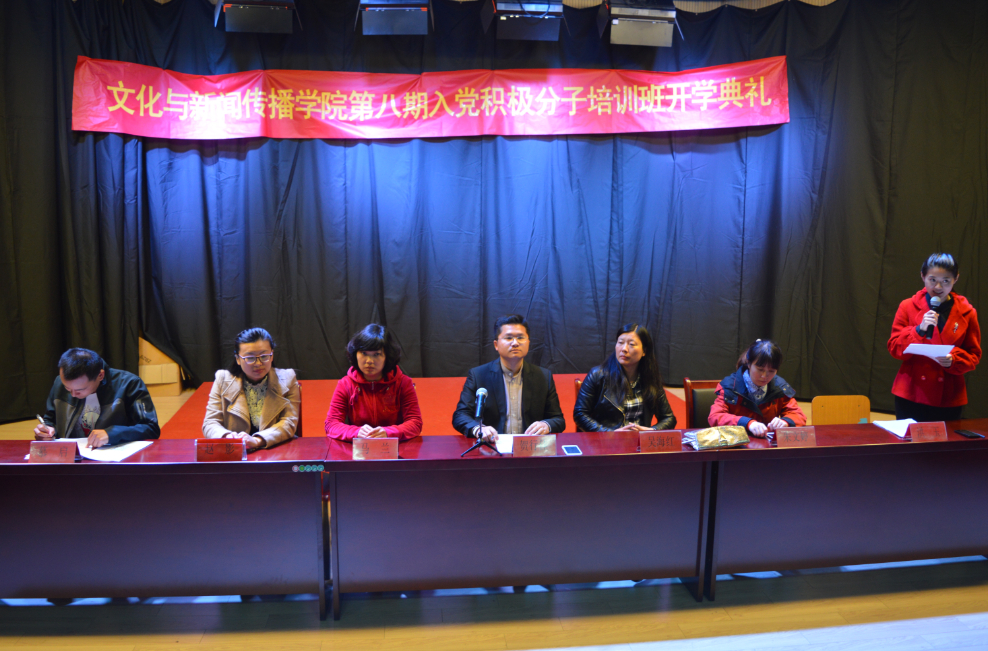 (文/刘青青,编辑/洪玉)4月16日,文化与新闻传播公司在新闻演播厅举行了第八期入党积极分子培训班开学典礼。出席到场的有文化与新闻传播公司党总支书记、行政副经理贺行佳,公司党总支组织委员、新闻系主任助理朱文婷,公司教师支部宣传委员、中文系副主任吴海红,公司支部书记马兰、慕启、赵影、本期培训班主任洪玉老师以及75位优秀的入党积极分子。