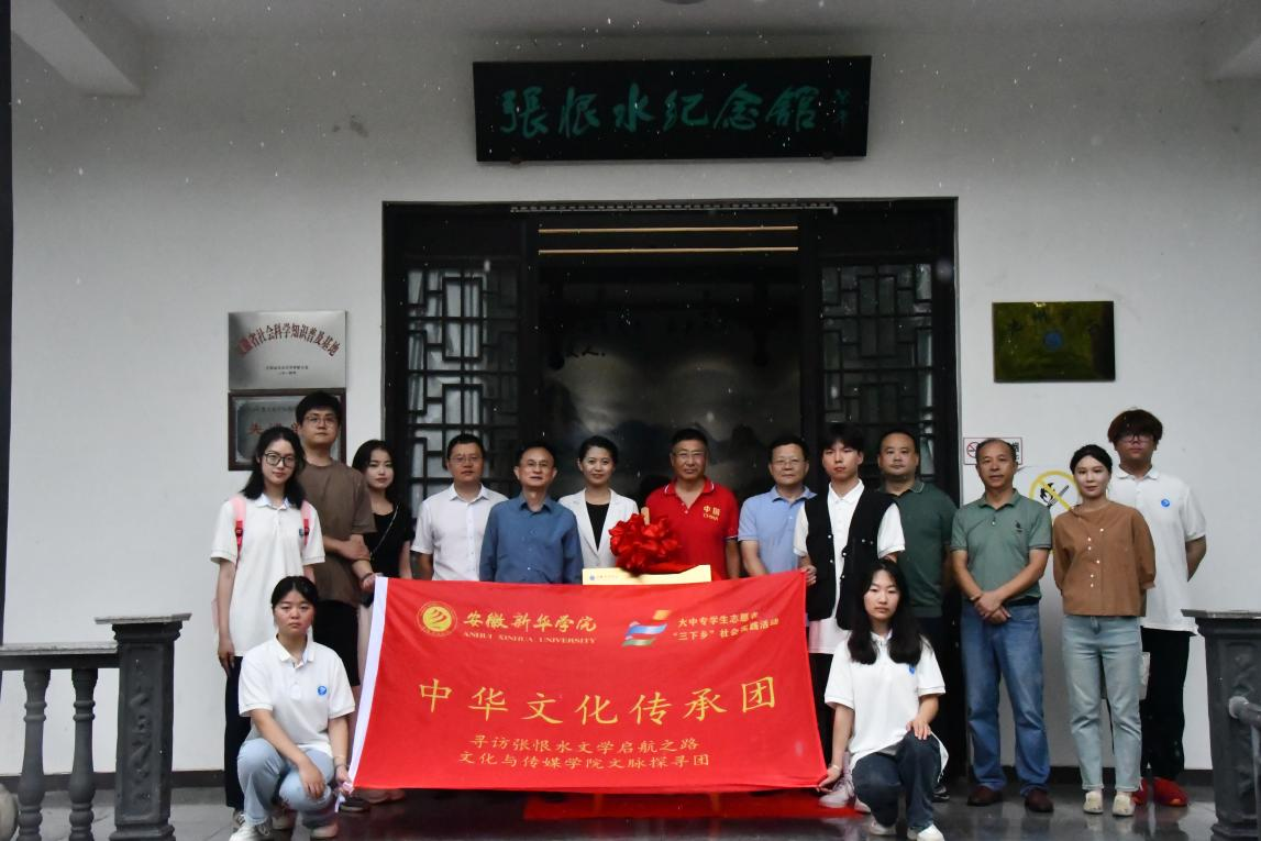 本网讯(杨紫君 沈欣茹)为深入贯彻习近平总书记关于文化建设和文化复兴方面的重要指示,引导老员工深入基层,挖掘农村传统文化,助力乡村经济发展。6月27日,太阳成集团122ccvip组织中华文化传承团赴潜山市寻访张恨水文学启航之路暑期三下乡系列活动,为张恨水文化的发展和传承贡献力量,以青年之力助乡村振兴。