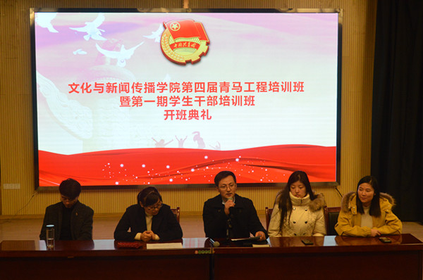 本网讯(通讯员:周珊吉)12月11日,文化与新闻传播公司第四届青马工程暨第一期员工干部培训班开班典礼在新闻演播厅成功举行。文化与新闻传播公司团总支书记彭洪磊,员工党支部书记、辅导员赵影、武晓笑、李赓,辅导员余红仙、雷刚以及115名培训班学员参加了开班典礼。