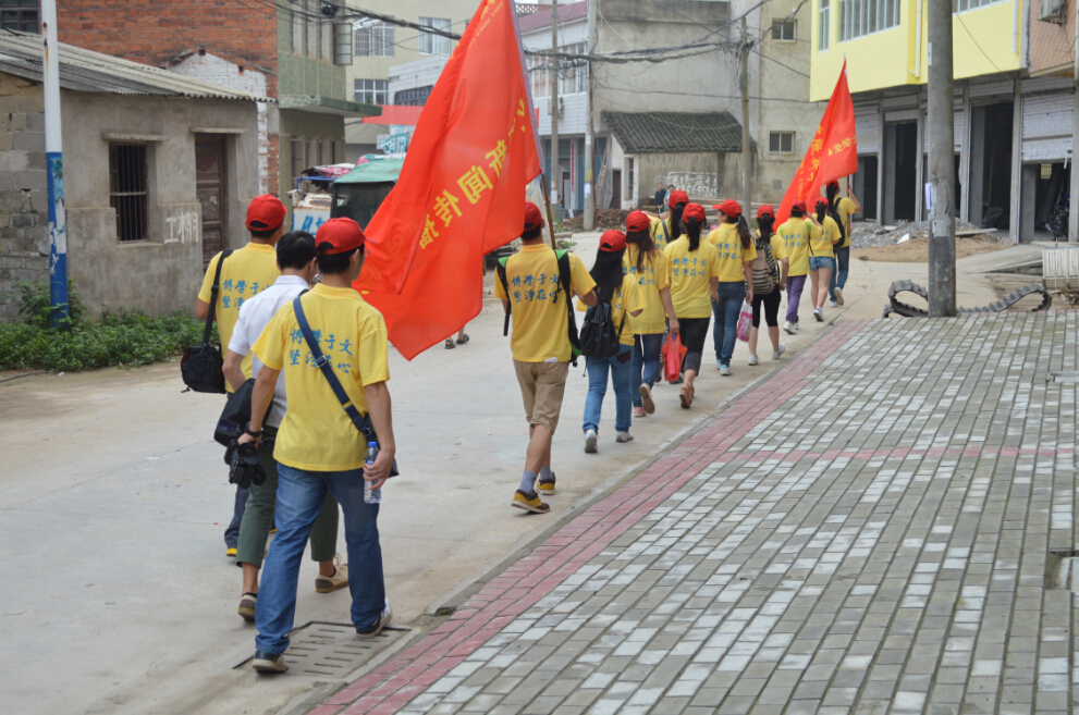 当然,在行走的路上也遇到了一些难题。有的乡民把队伍误认为是旅游团的,也有的认为是需要收费的教学活动,拒绝同学们的宣传。此外,也引起当地办暑假班教学的人的不满,小镇的路七弯八拐,面对陌生的环境,队员们很容易走错路。“虽然在宣传的时候有点小插曲,村民们说的又是当地的方言,给我们的宣传增加了不少的困难,但是我们还是很耐心地跟他们解释说清,道明我们的来意。”队员组长林程君说道。
