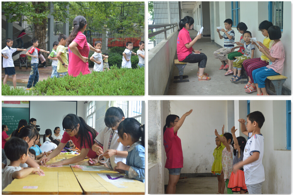 在凉亭中学的2号教学楼上,飘来阵阵的歌声。薪火队员们的教学小老师们的特色课程开始了,小老师们把员工被分成兴趣小组进行教学。手语、舞蹈、跆拳道、手工等课程陆续展开。