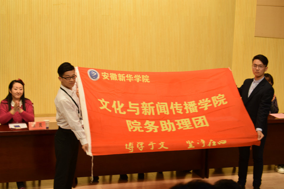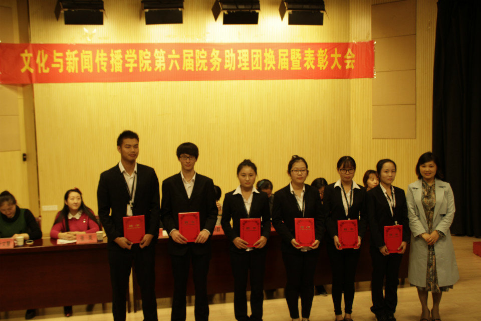 本网讯(通讯员:周思敏)10月19日中午,文化与新闻传播公司第六届信息助理团换届暨表彰大会在新闻演播厅顺利举行。经理助理朱向群,行政秘书兼助理团指导老师马兰,教学秘书陈莉,教师代表张岚以及辅导员赵影、叶文慧、吴琼老师出席了本次会议。受邀参加的还有各二级公司助理团、员工会以及各兄弟社团代表。
