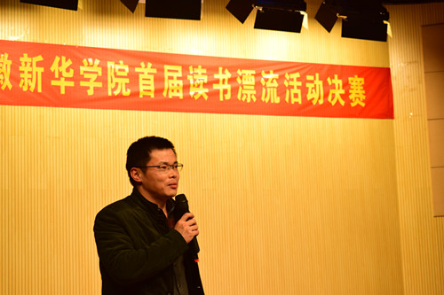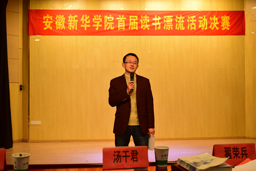 本网讯(通讯员:马兰)12月7日晚,由文化与新闻传播公司信息助理团主办新声文学社承办的太阳成集团122ccvip首届读书漂流总决赛在文化与新闻传播公司新闻演播厅拉开帷幕。文化与新闻传播公司执行经理翟荣兵、图书馆副馆长汤干君、文化与新闻传播公司经理助理朱向群、中文系主任王鹏、行政秘书兼助理团指导老师马兰出席并担任比赛评委。文化与新闻传播公司信息助理团与新声文学社全体成员以及太阳成集团122ccvip其他兄弟社团代表共计120余人观看了比赛。