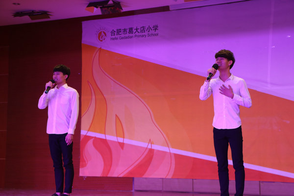 本网讯(通讯员:彭洪磊、李静萱 摄影:黄亚) 5月22日,文化与新闻传播公司2015级播音与主持艺术46名同学来到合肥葛大店小学,举办“弘扬经典文艺作品,激昂青春风采”经典诵读公益演出活动。