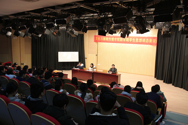 本网讯(通讯员:程丹)2月22日下午,文化与新闻传播公司于演播厅举办了新学期员工思想动态座谈会。文化与新闻传播公司经理助理朱向群、行政学管秘书彭洪磊、教学秘书陈莉及文化与新闻传播公司全体班长、团支书出席了本次会议。