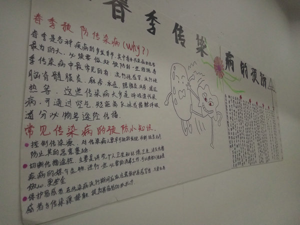 此次活动得到了各系团总支及各班级积极响应,大家把预防传染病的激情投入到板报的创作之中,板报主题鲜明、布局美观、图文并茂。全面的介绍了春季预防传染病的小知识,使同学们认识到预防传染病的重要性。