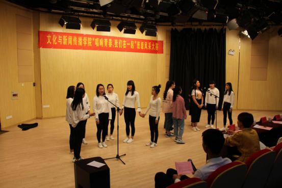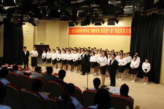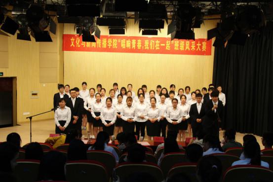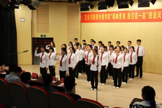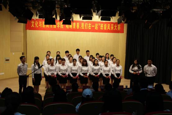 本网讯(通讯员:周珊吉)4月18日晚,文化与新闻传播公司在演播厅举办“唱响青春,我们在一起”班级风采大赛。通过集体活动,增进班级凝聚力,营造积极向上、健康文明的校园文化氛围。文化与新闻传播公司经理助理朱向群、洪玉,行政兼学管秘书彭洪磊,辅导员吴琼、雷刚、李晓璐担任比赛评委。
