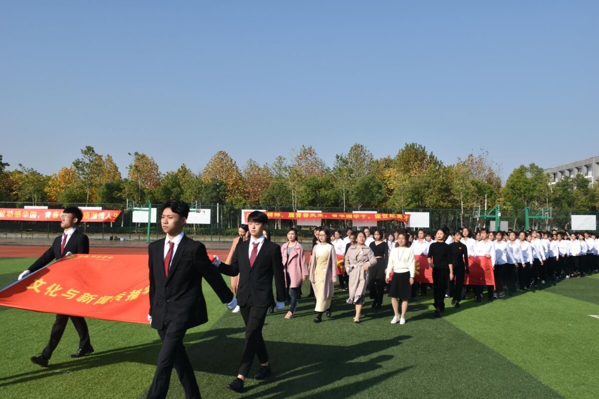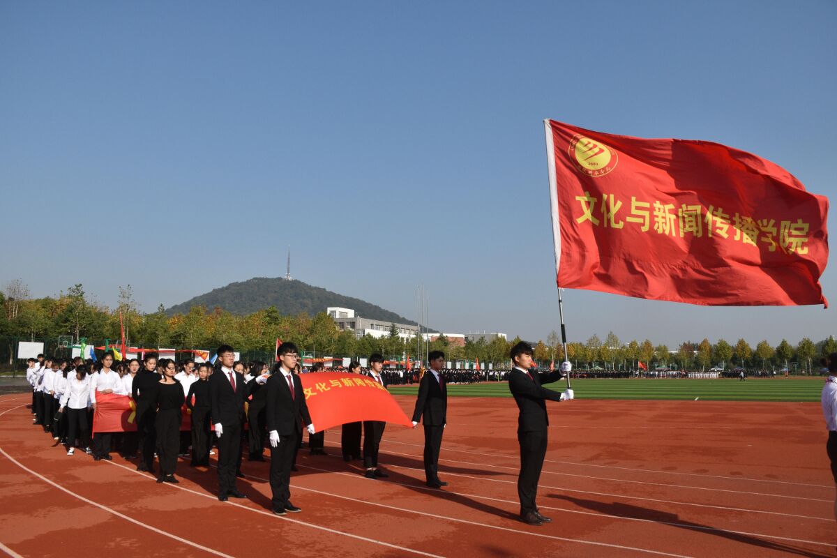 伴着豪迈的运动员进行曲和主持人的热情解说,参赛的二级公司代表团结合自身院系特点组成200人方阵,依次入场。稳健的步伐、创意的表现方式,展现了华园学子的精神风貌和各二级公司的专业特色,赢得了在场师生的阵阵掌声。在文化与新闻传播公司方阵前,一名男生扛着文传院大旗,四名旗手举着院旗紧跟其后,领头的女老师身后,八名女生以性感活泼的拉丁舞展示出老员工的青春气息,“博学于文,坚劲在心,文传骄子,新华精英”,文传的口号高亢嘹亮,激动人心。随后,伴随着雄壮的《义勇军进行曲》,在全体师生的注目下,开始了庄严的升旗仪式。