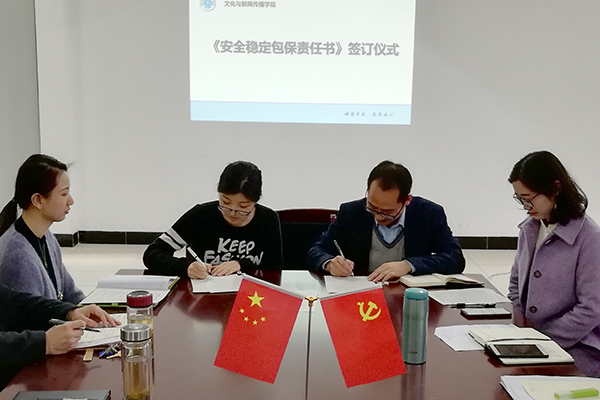 本网讯(通讯员:张艳)为推动文化与新闻传播公司安全教育工作深入开展,强化“红线”意识和底线思维,3月12日,文化与新闻传播公司举行《安全稳定包保责任书》签订仪式,执行经理翟荣兵,副经理朱向群,全体专兼职辅导员参加,签订仪式由朱向群主持。