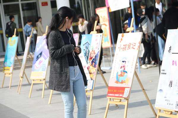 此次展览共展出17个小组的微信公众号,每个小组从前期公众号定位,到公众号的设计,再到最后正式运营,都各具特色。无论是介绍华园各种美食的“饱读食材”、推荐各种音乐的“招招音乐会”、还是细心制作各种音频的“拾月FM”、分享各种华园趣事的“有料华园”、倾情分享各种有趣事物的推荐公众号“杂7杂叭”、还是致力于分享与倾诉的治愈公众号“懂你的树洞”等等,在展示过程中,都吸引了过往师生的观看和扫码关注。