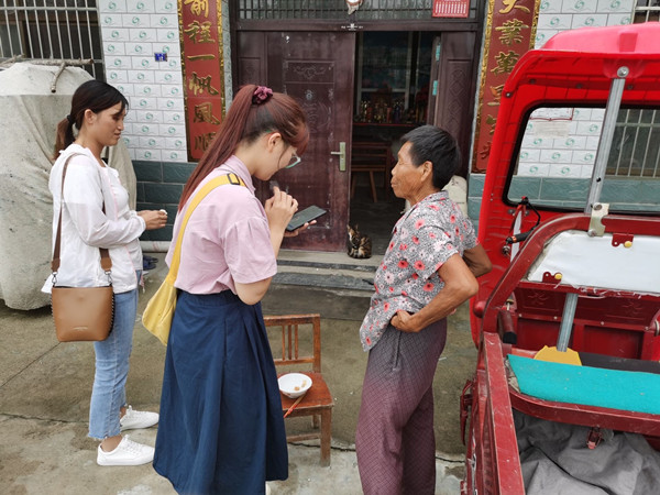 2019级汉语言文学专业3班团支部在团支书程功和组织委员王倩的带领下于8月20日前往石塘镇阚东社区。首先,他们在社区工作人员的带领下去往2户低保户人家,通过实践团队成员熊家旺、程琦、肖娟制定好的空巢老人问卷调查表,了解到两位老人在物质和精神层面上的迫切需求,有针对性地对其进行心理疏导,并向他们讲述2020年农村地区扶贫政策,解决了两位老人基本的精神需求,同时也让两位老人感受到我们实践团成员的真心关爱。