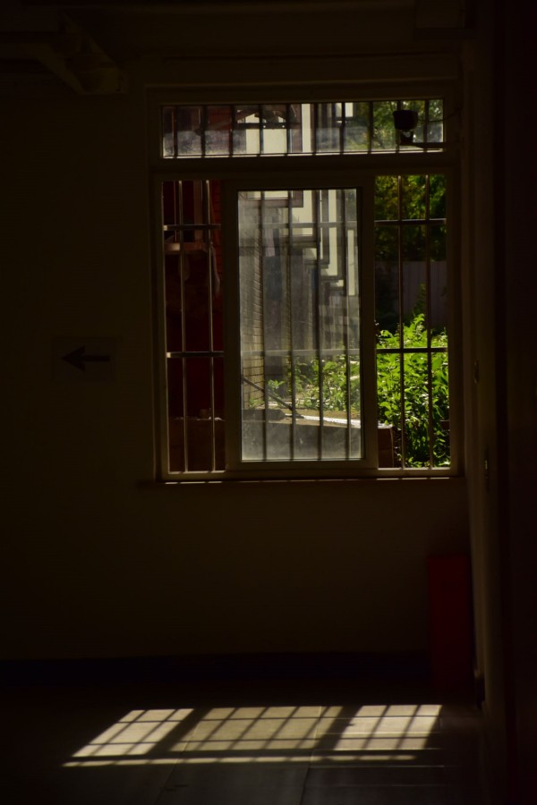 创作简介:拍摄于炎炎夏日的清晨,清晨的宿舍楼员工们还在熟睡,楼外却已经升起了烈日,透过窗户映射在宿舍楼内,窗外碧绿的树枝与楼内黝黑的环境形成鲜明的对比,窗户的影子映射在楼内,二者相互衬托,让夏日的清晨显的和谐而又安逸,也暗示者学子们即将迎来美好的一天。