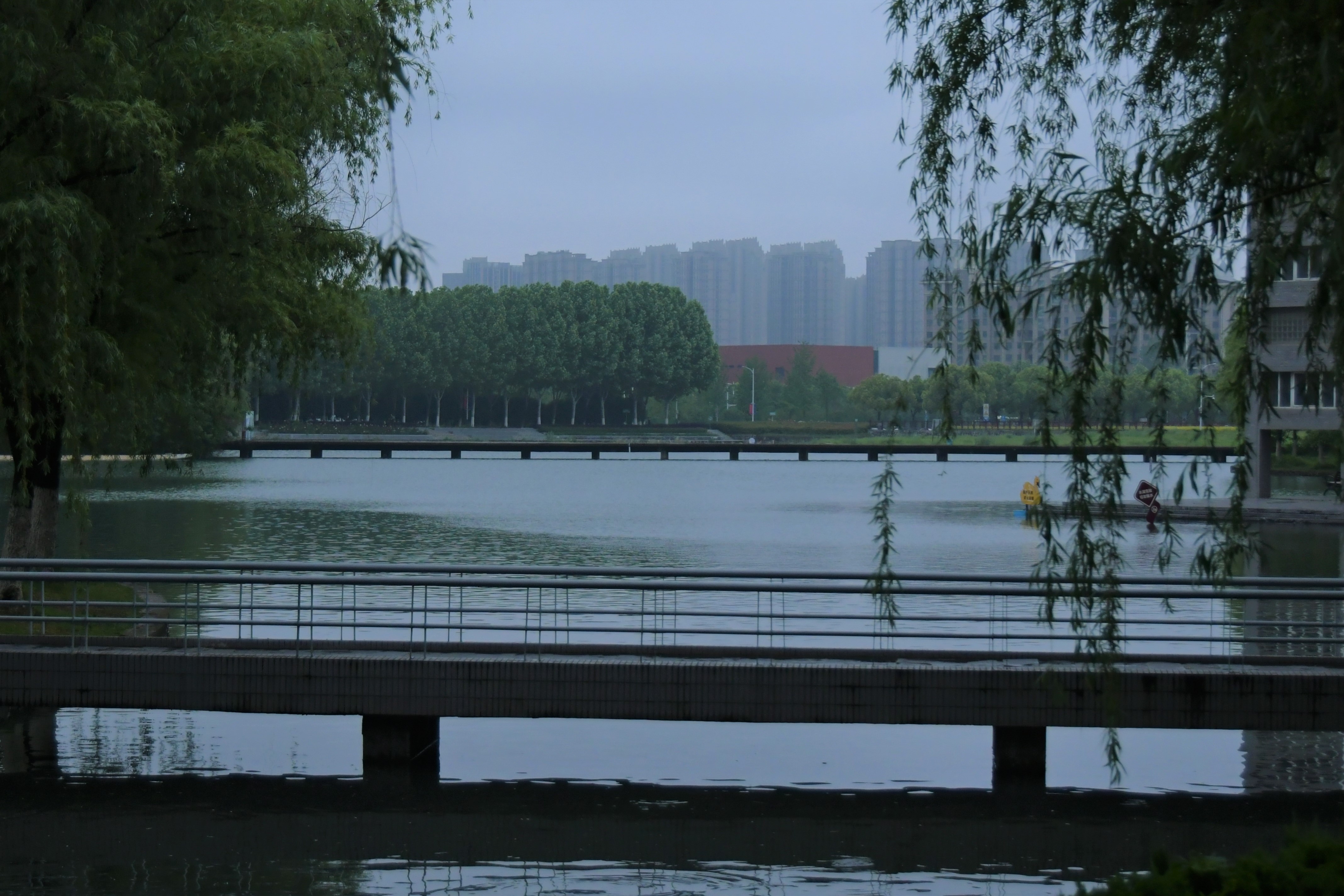 该作品拍摄于如琴湖上,阴天早晨的如琴湖别有一番风味,横桥立于如琴湖上,前有柳,后有杨,给人一种幽然致远的感觉。桥下水面的波纹,似荡漾于人内心深处。