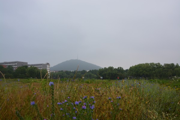 创作简介:春山多胜事,花开自有时!作品采用水平拍摄方向,以花草为前景,以由近及远的绿树线条为引导,增加画面整体的纵深感与空间感,并结合阴雨天气下独特的光感,将阴雨天气下华园的远山与花儿呈现给观众,展现华园的独特之美。
