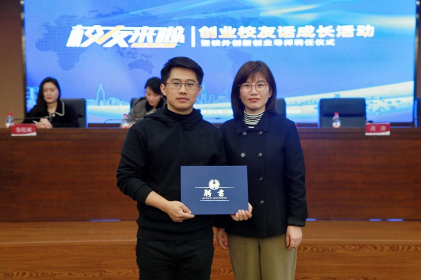 活动伊始,罗振林介绍了出席活动的嘉宾及领导,对大家的到来表示热烈欢迎。紧接着,孙珊珊宣读聘任连海强为校外创新创业导师的文件,芮萍主任为连海强颁发聘书并将会,她期待连海强后续能够继续为公司的发展建议献策,为学弟学妹的成长成才提供更多的帮助与指导。